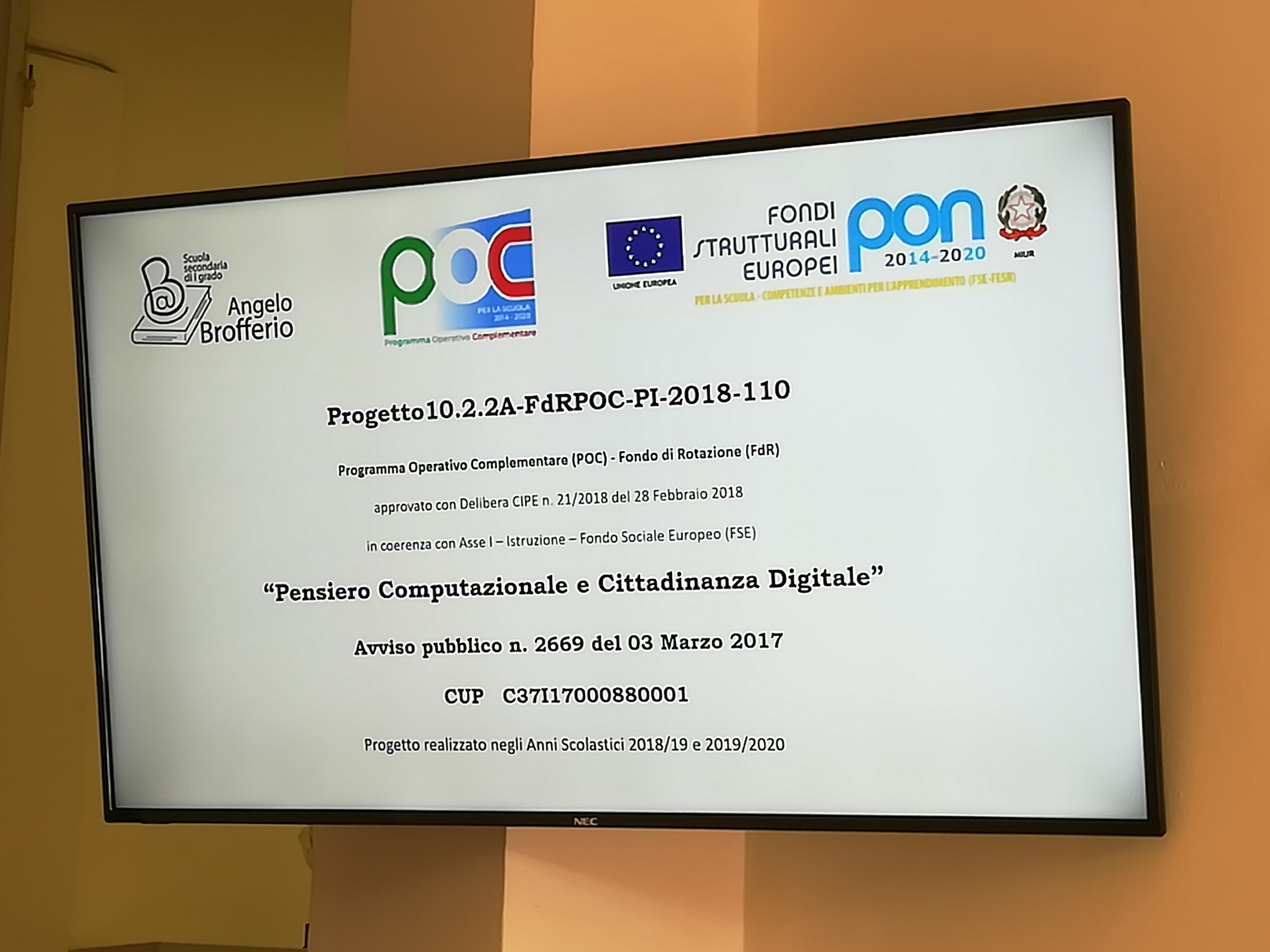 - il monitor per la pubblicità del progetto in modalità digital signage è installato nella zona ingresso sede Brofferio, a fianco dello Sportello Ufficio, che svolge servizio di apertura al pubblico : cartellonistica digitale.jpg